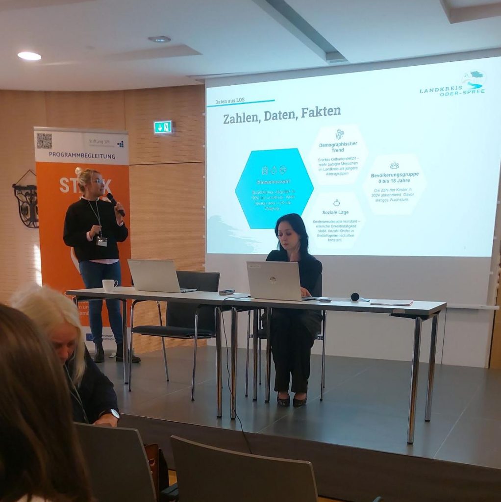 Gemeinsam mit der Programmbegleitung im ESF+ Programm „Stark vor Ort“ lud der Landkreis Oder-Spree am 7. November zum 1. Präventionsnetzwerk Kinderarmut nach Fürstenwalde, um kommunale Strategien zur Armutsprävention zu erarbeiten. Mehr als 60 Teilnehmende aus der Praxis der Sozialen Arbeit, von Freien Trägern, aus der Stadt Fürstenwalde, vom Jobcenter und dem Arbeitsamt, sowie aus der Verwaltung des Landkreises trafen sich zu einem informativen und anregenden Austausch.