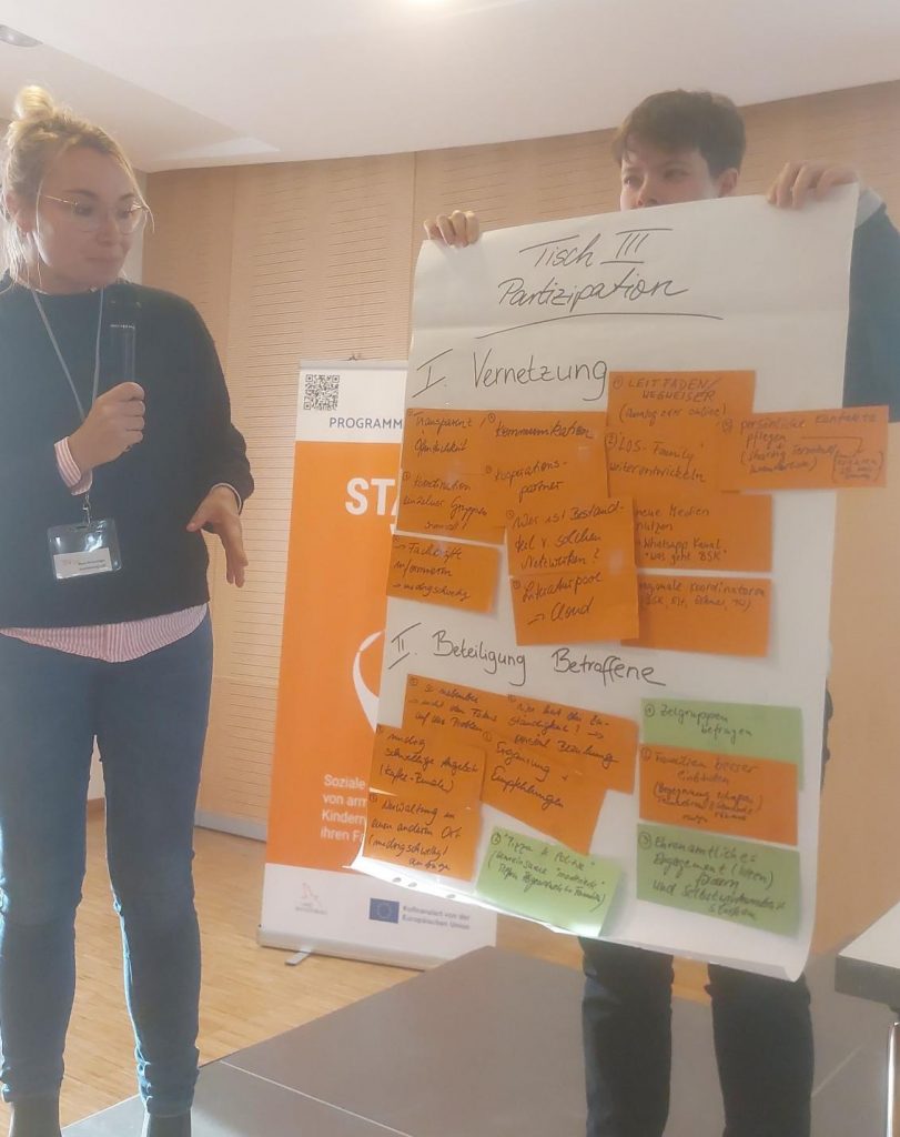 Nach einer stärkenden Pause wurden in Workshops drei thematische Akzente gesetzt: Zum Thema „Partizipation – Wie können Betroffene aktiv in die Gestaltung und Umsetzung von Angeboten zur Armutsprävention eingebunden werden?“ diskutierten Teilnehmende verschiedene Wege, um Armutsbetroffene mithilfe vorhandener Netzwerke in die Diskussion einzubinden.