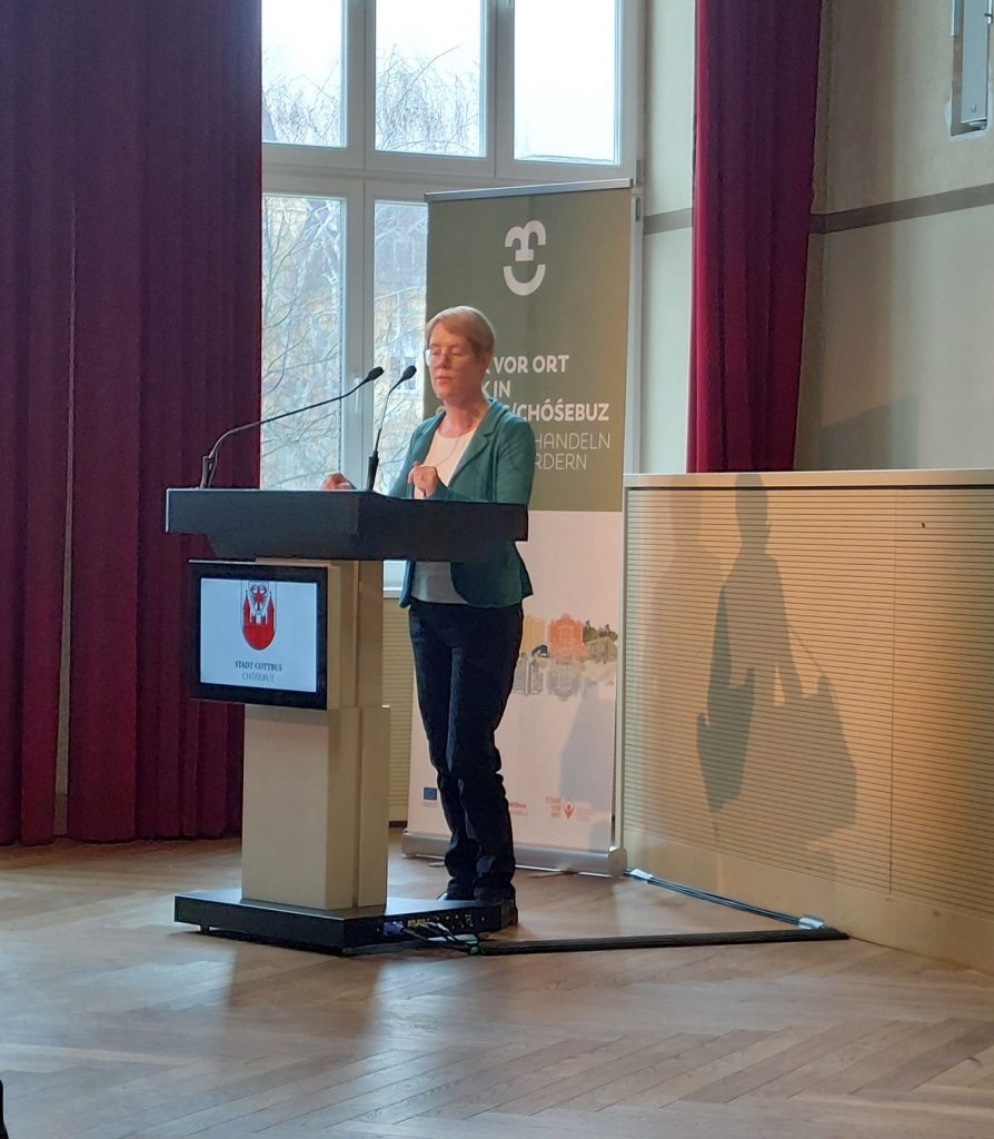 Im anschließenden Austausch mit dem Publikum wurden Chancen und Grenzen des Vergleichs zwischen der Berliner Strategie und dem ESF+Fördervorhaben auch in Cottbus akzentuiert.