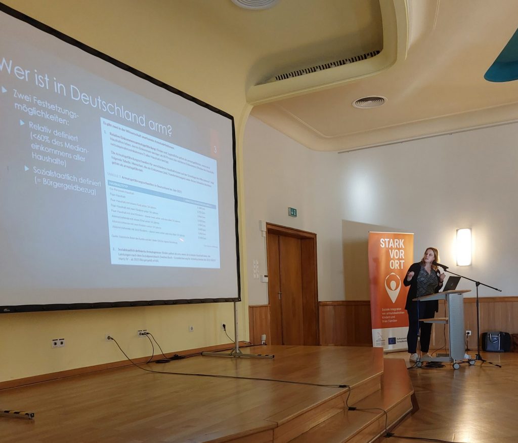 Anne-Kathrin Menzel, Kinder- und Jugendtherapeutin aus Premnitz, zeigte die „Auswirkungen von Kinder- und Jugendarmut auf die psychosoziale Entwicklung“ auf. Dabei wies sie auf Risikofaktoren für die Armutsgefährdung hin und ging dabei insbesondere auf einzelne Familienkonstellationen ein (Mehrkindfamilien, Alleinerziehende).